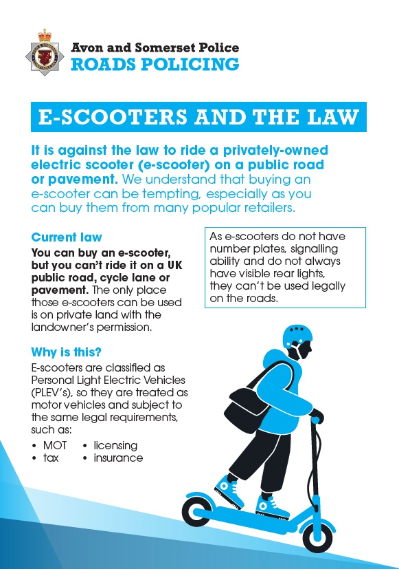 We have been asked by Avon & Somerset Police to share an important letter regarding the legal use of privately-owned e-scooters. The full letter is attached below for parents and carers to read.